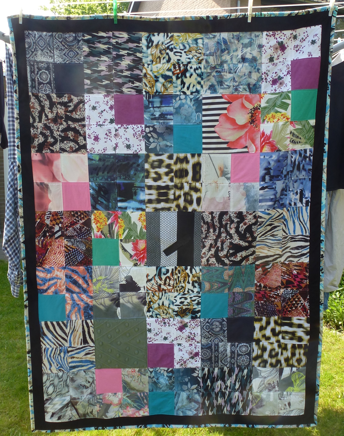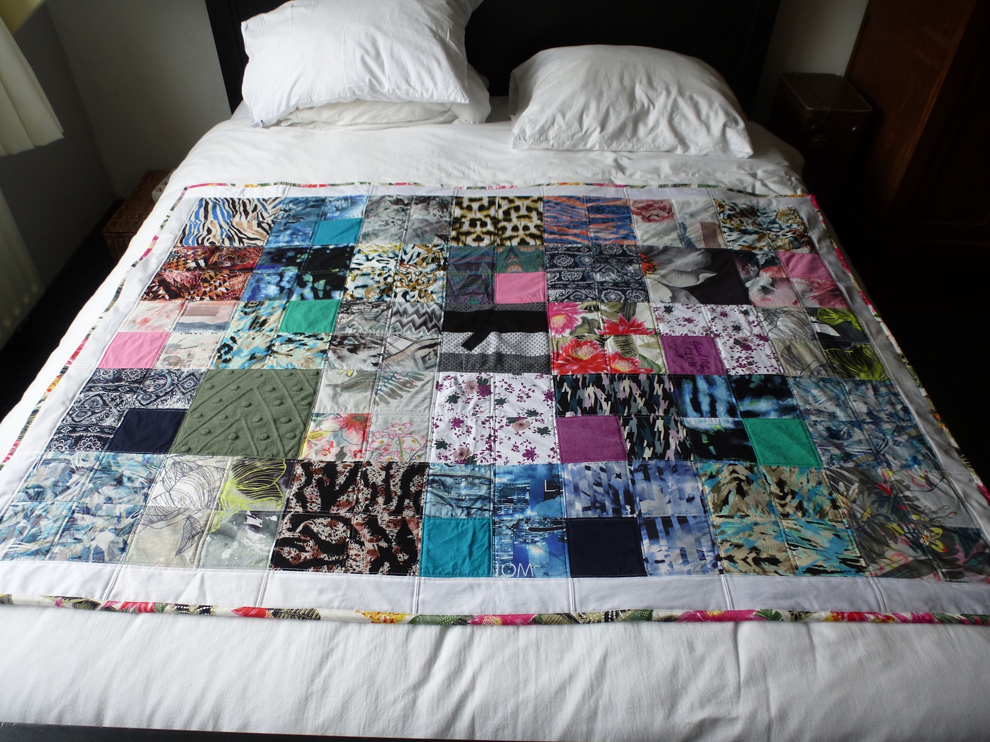 Voor een deken van 150 x 110 cm heb ik ongeveer 165 lapjes nodig van 12 x 12cm. Dit zijn ongeveer 10 tot 15 kledingstukken.