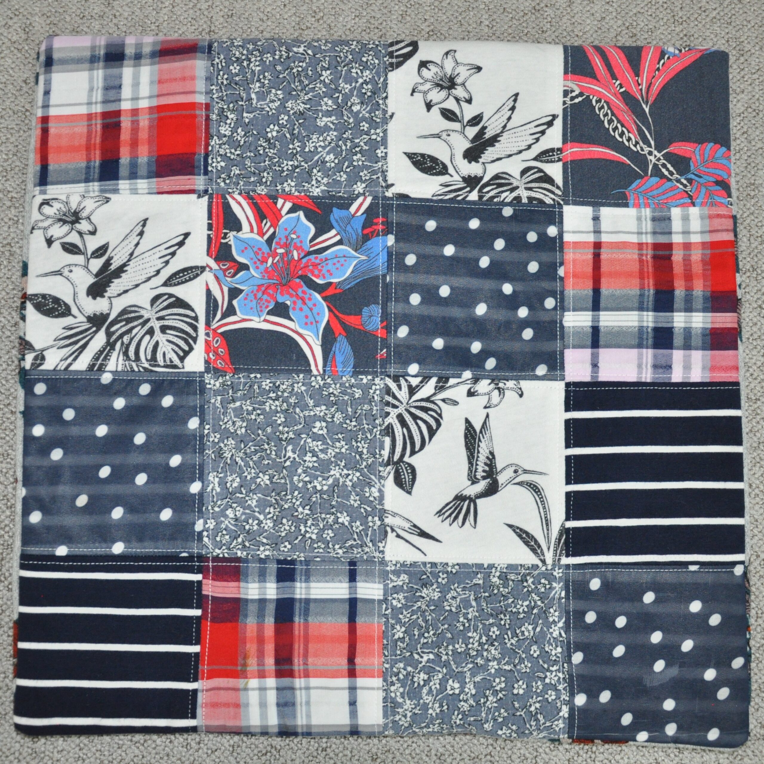 Ook kan ik een bijpassende kussenhoes maken van de lapjes.