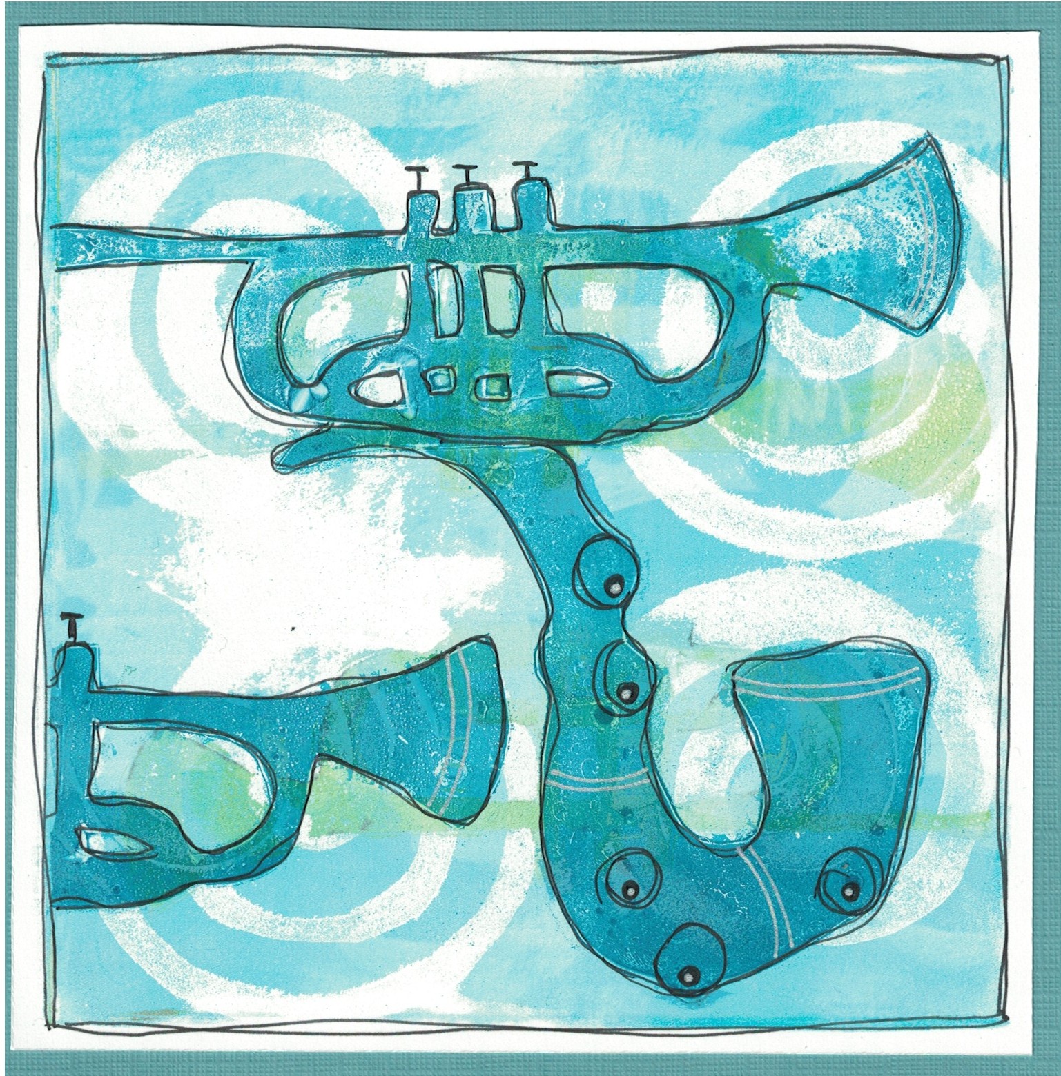 Tags: acrylverf, monoprint, muziekinstrumenten