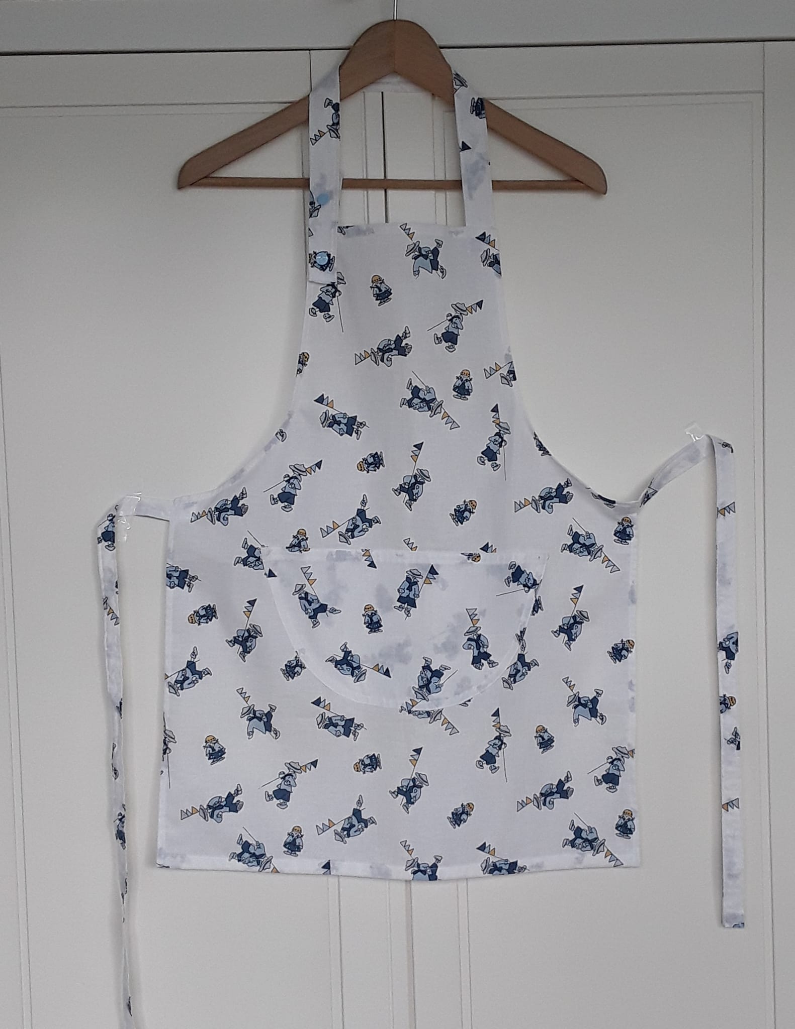 Kinderschort gemaakt van een restant dun kateoen met afbeeldingen van padvinders. De halsband is verstelbaar in 2 standen door middel van drukknoopjes. Geschikt voor kinderen van ongeveer 4 tot 10 jaar.